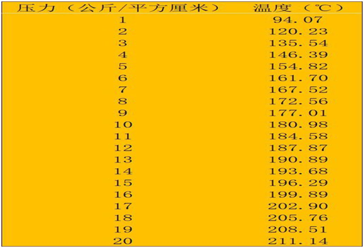 飽和蒸汽的溫度與壓力之間一一對應,二者之間只有一個獨立變量。理想的飽和蒸汽狀態(tài),指的是溫度、壓力及蒸汽密度三者存在一一對應的關系,知道其中一個,其他二個值就是定數。存在這種關系的蒸汽就是飽和蒸汽,并存在飽和蒸汽壓力與溫度對照表。標準的飽和蒸汽壓力與蒸汽溫度對照表是根據國際單位制進行編制的,即壓力單位為MPa,溫度單位為℃。