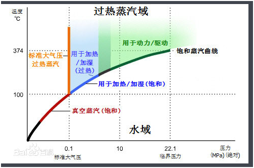 飽和蒸汽在很多行業(yè)具有很廣的用途。在化工領域,蒸氣常被當做熱源,氣壓在0.1 - 5 MPa,溫度在110-250℃,一般是飽和蒸汽。在火電和核電領域,蒸汽被用來做驅動渦輪機的驅動力。亞臨界發(fā)電:氣壓17MPa,溫度540℃,過熱蒸汽。超臨界發(fā)電:氣壓30MPa,溫度為600℃。核電一般用高壓飽和蒸汽。在醫(yī)療領域,被用于高溫消毒,氣壓0.7MPa,溫度160℃,過熱蒸汽。,化工廠一般用于化料、加熱儲罐、加熱反應釜,溫度一般在120以上。食品高溫殺菌,一般在100-150℃,超高溫殺菌指加熱溫度為135~150℃。